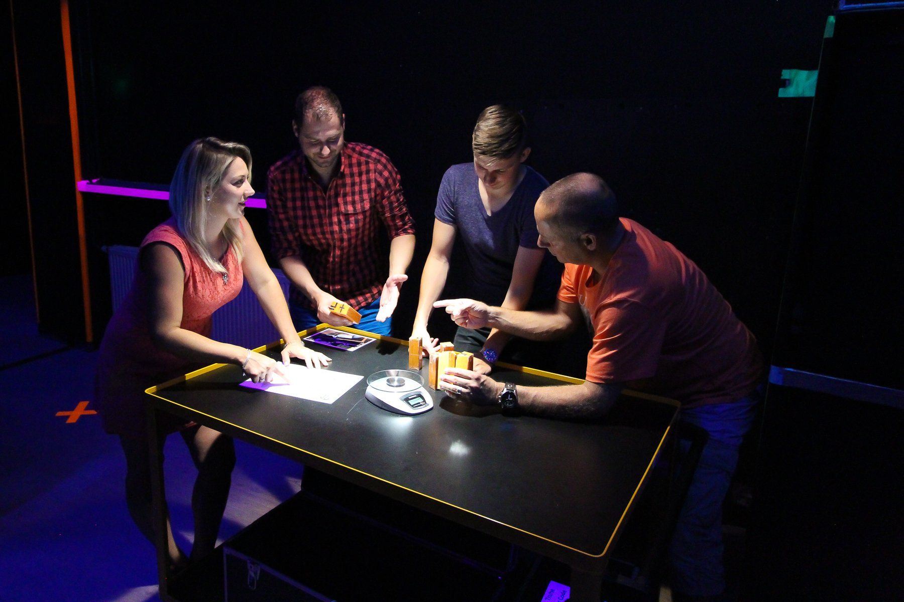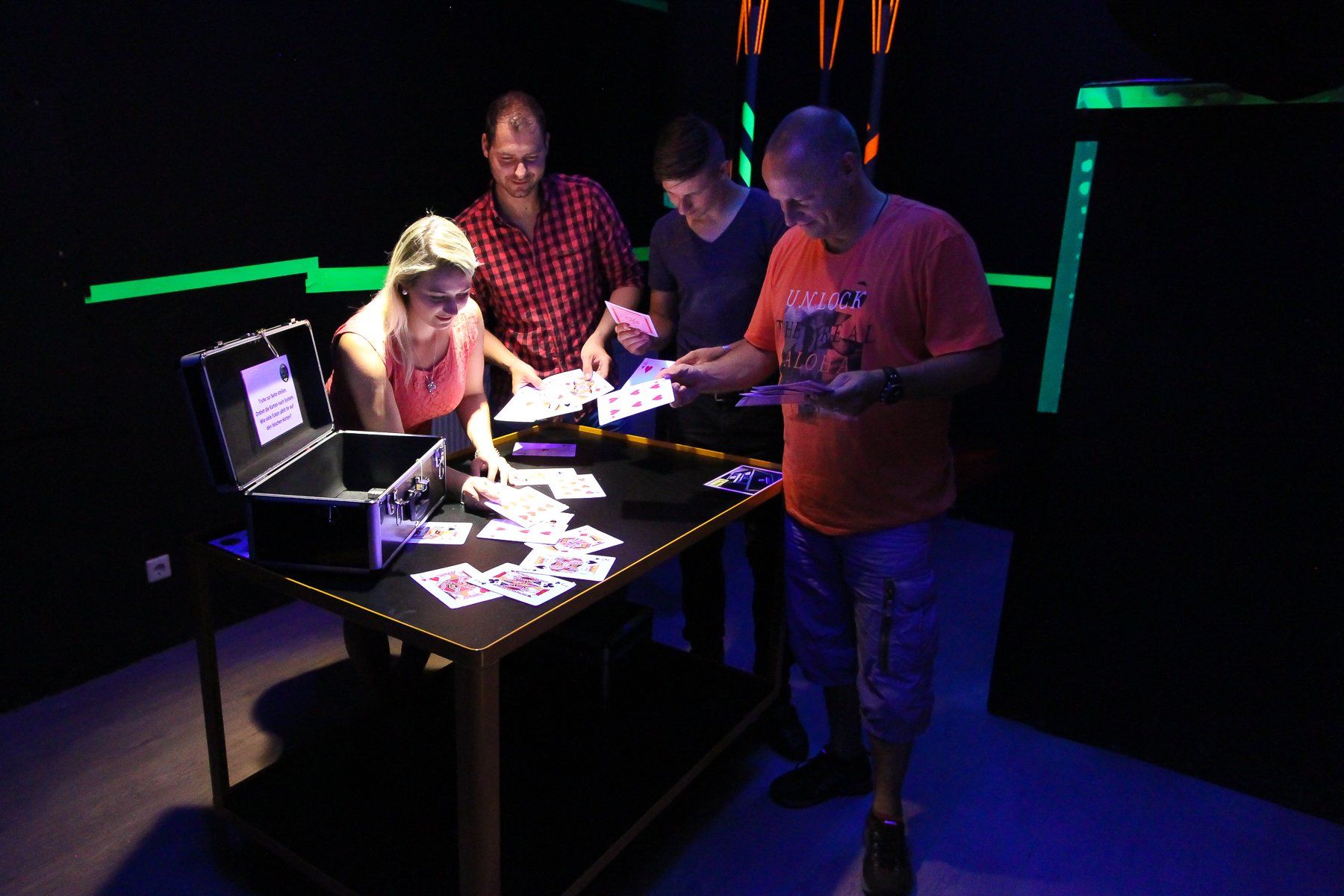 - Start des 90-minütigen Spiels. Die Spielleiter betreuen die Gäste intensiv.