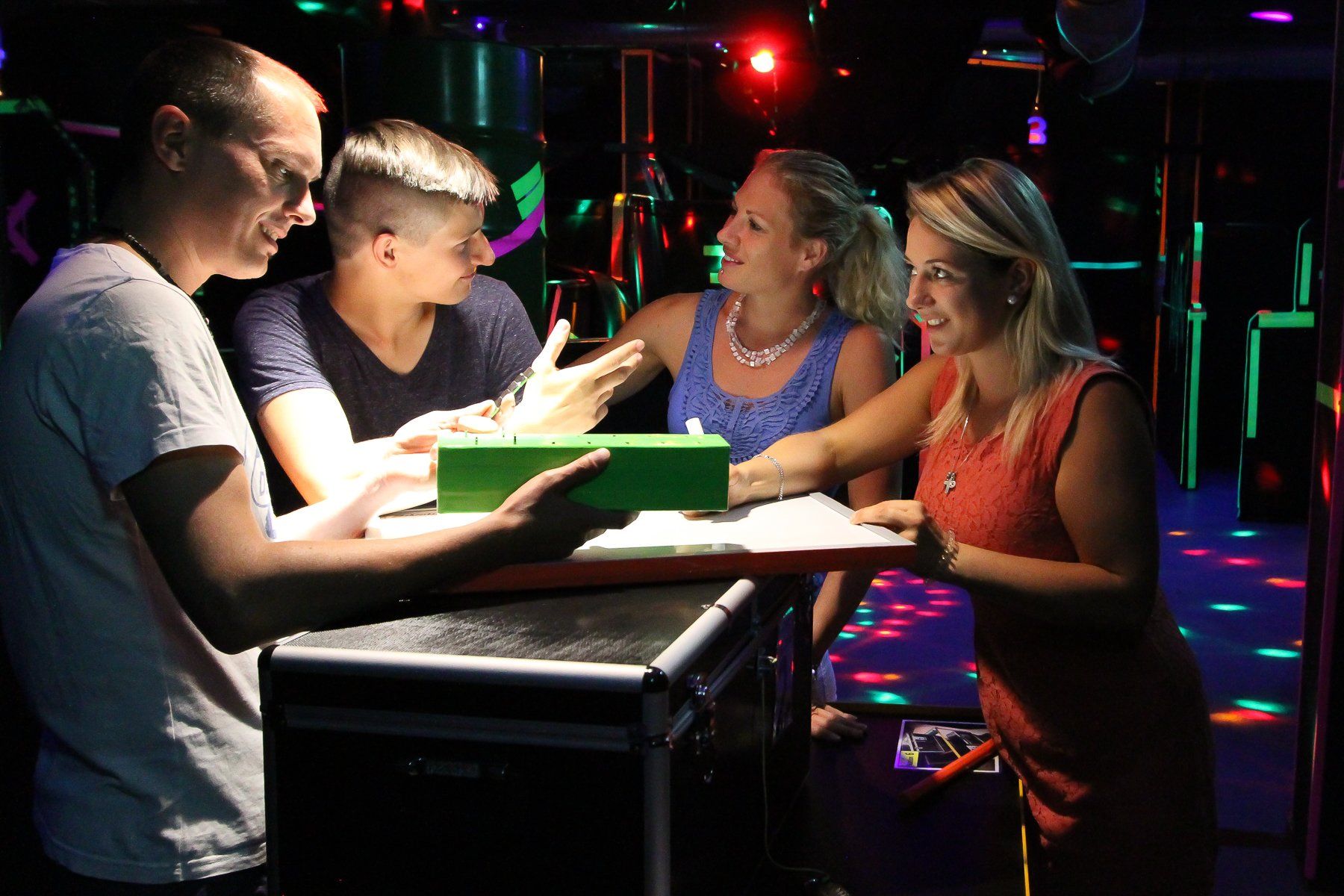 - Start des 90-minütigen Spiels. Die Spielleiter betreuen die Gäste intensiv.